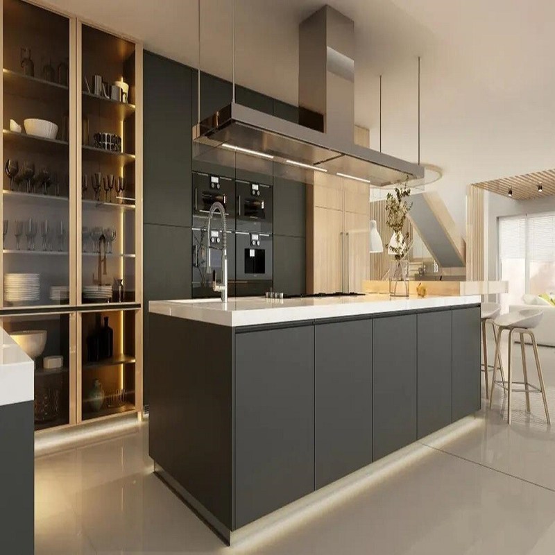 オーダーメイド 防水 木製 ドア を 備えた 現代の キッチン キャビネット 9