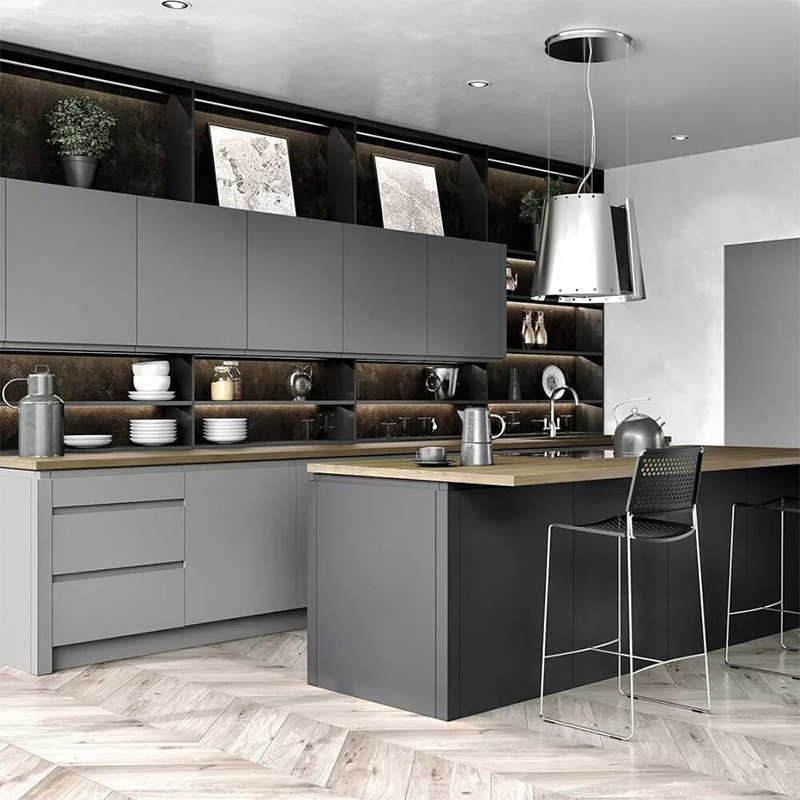 オーダーメイド 防水 木製 ドア を 備えた 現代の キッチン キャビネット 1
