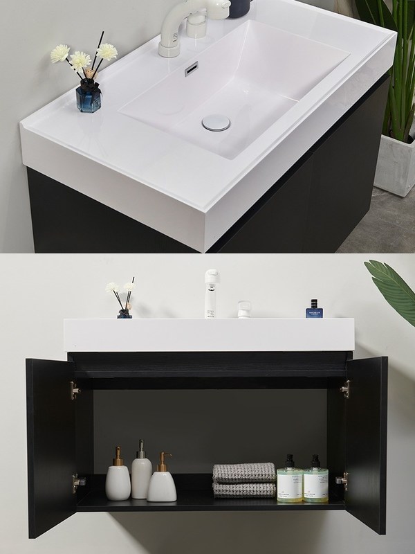 クォーツストーンカウンタータップ 防水壁 木製 浴室 バニティ 浴室デザイン 6
