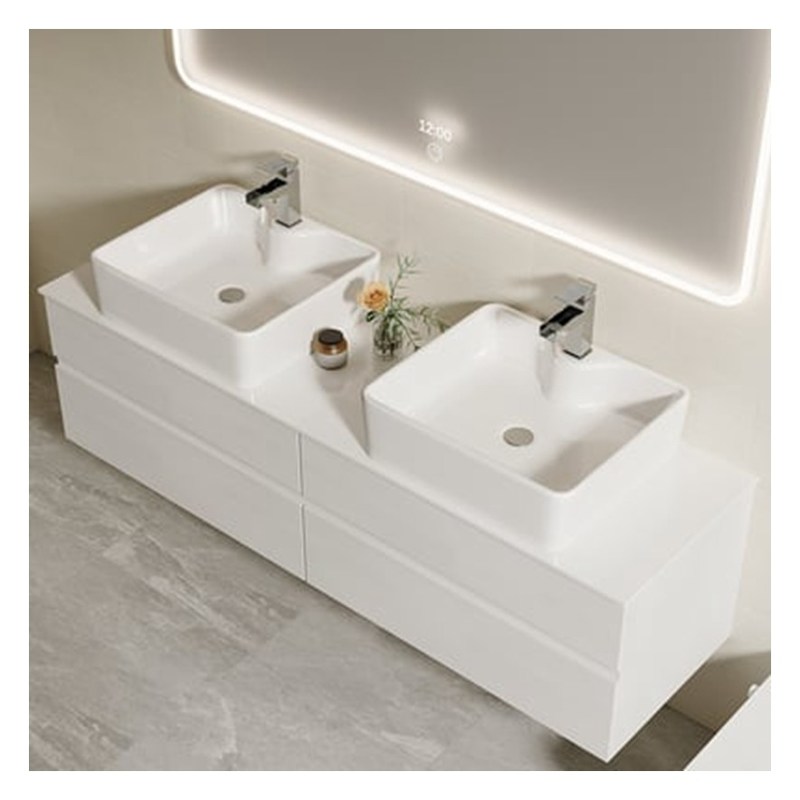 パーソナライズ可能な白い浮遊浴室のバニティ 偽りの大理石上部 18
