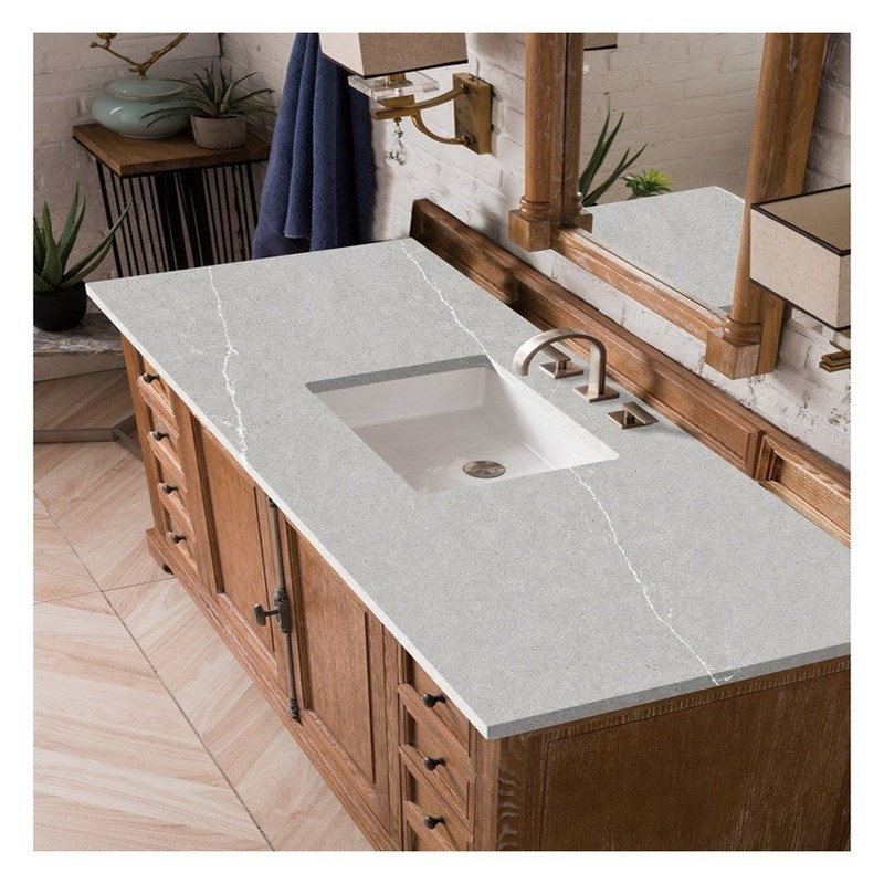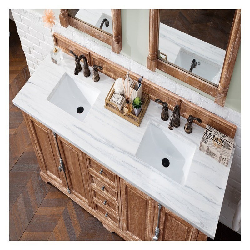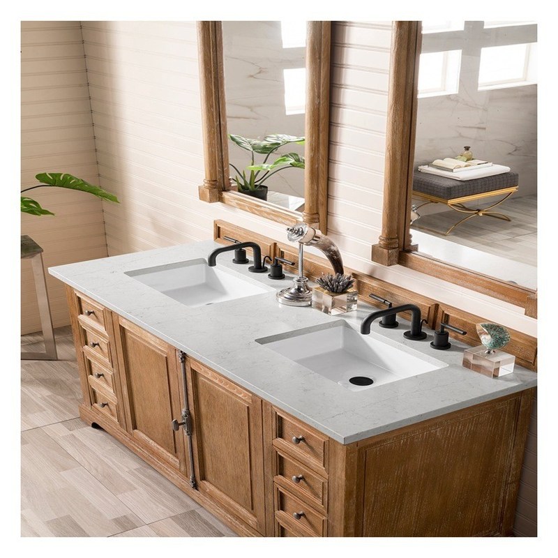 豪華 マシッドウッド バスルーム バニティ ホワイトロック スラブカウンターテーブルと水槽を含む 12