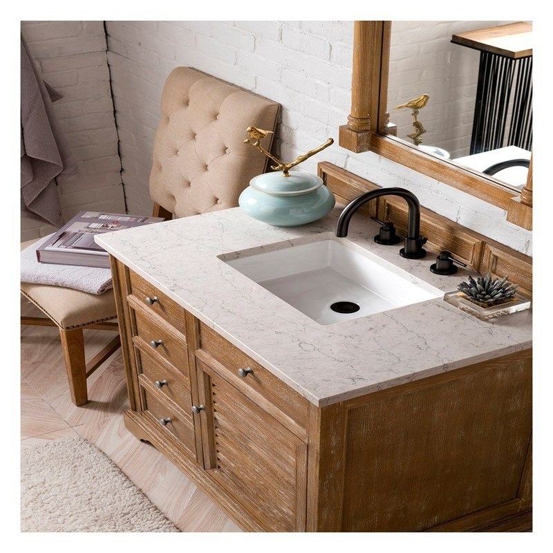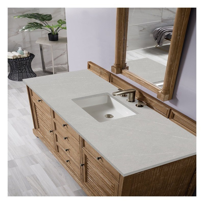 豪華 マシッドウッド バスルーム バニティ ホワイトロック スラブカウンターテーブルと水槽を含む 10