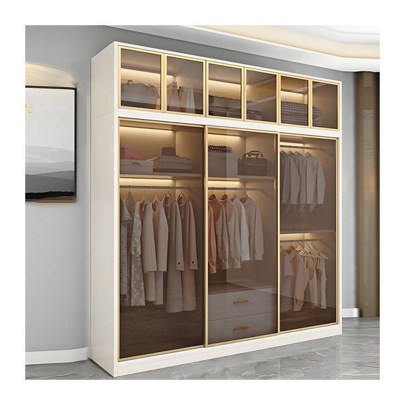 高さ調節可能 エレガント ホワイト アルミ フレーム ガラス ドア パネル マシッド 木製 クローゼット