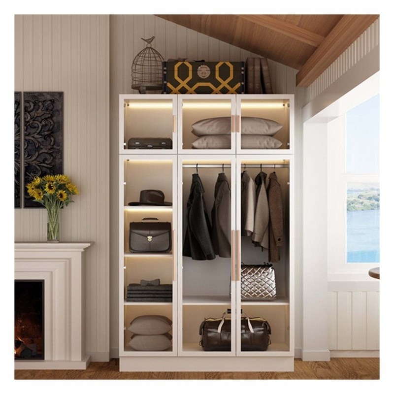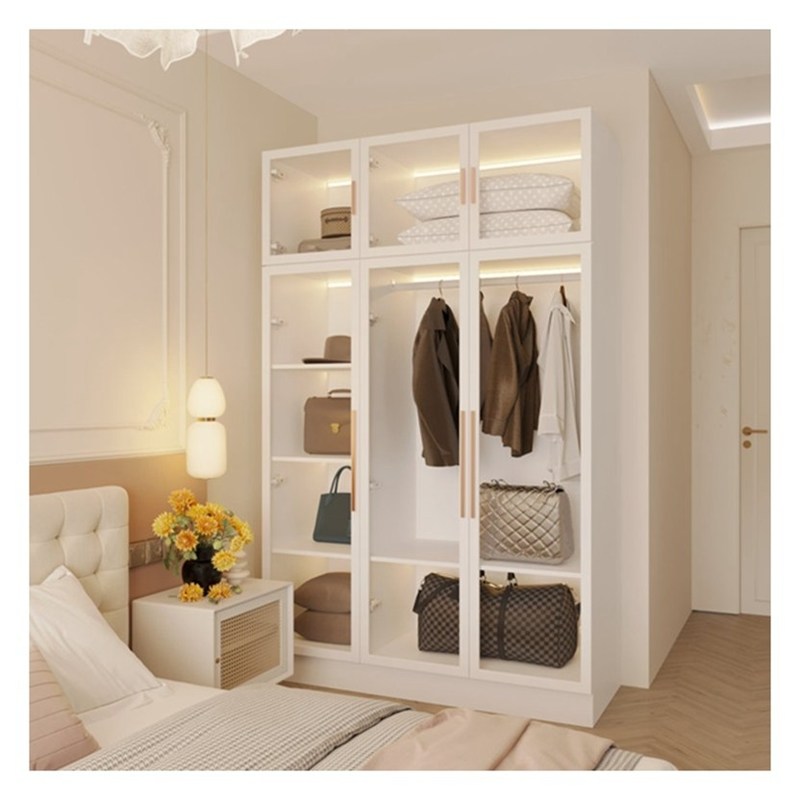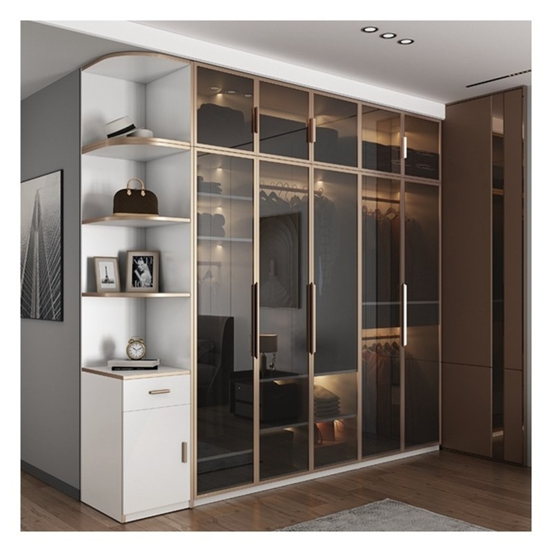 高さ調節可能 エレガント ホワイト アルミ フレーム ガラス ドア パネル マシッド 木製 クローゼット 3