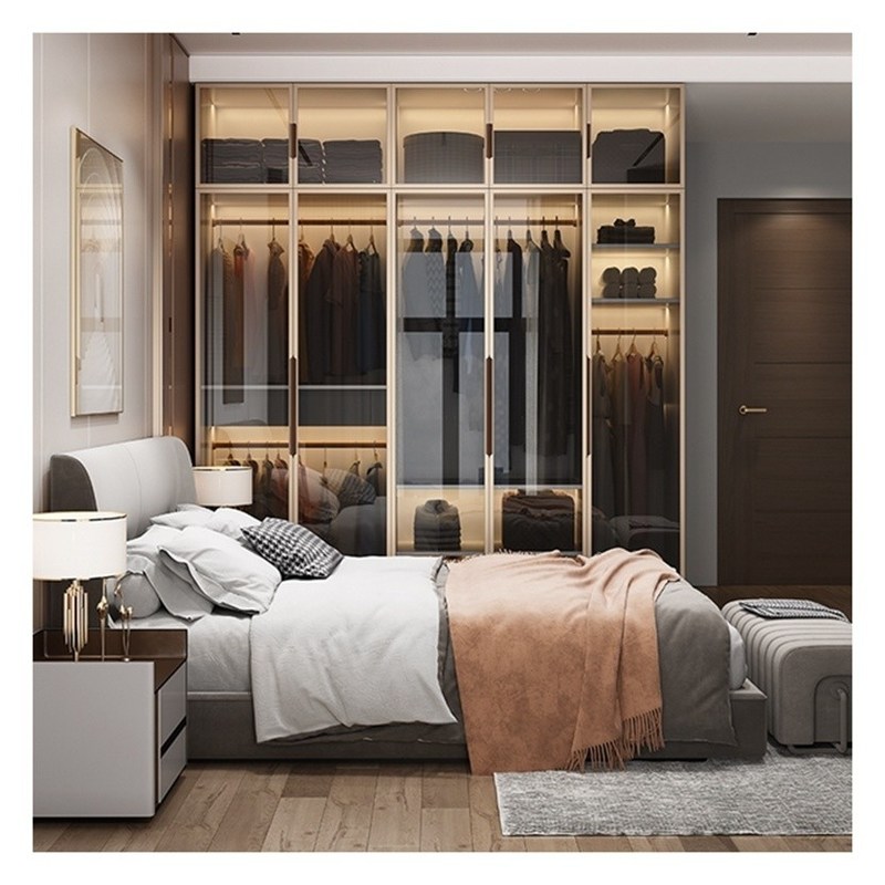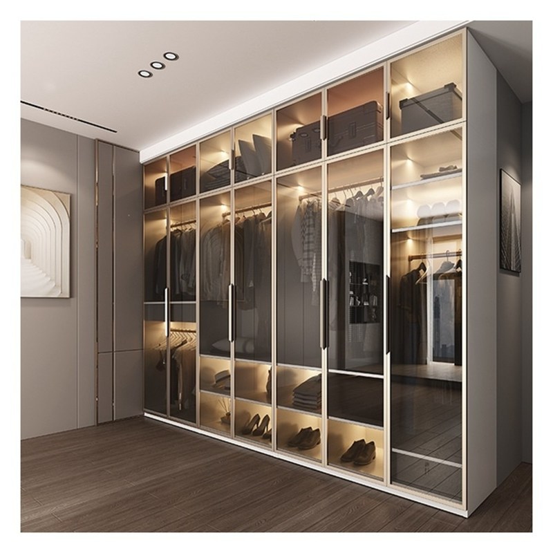 高さ調節可能 エレガント ホワイト アルミ フレーム ガラス ドア パネル マシッド 木製 クローゼット 11