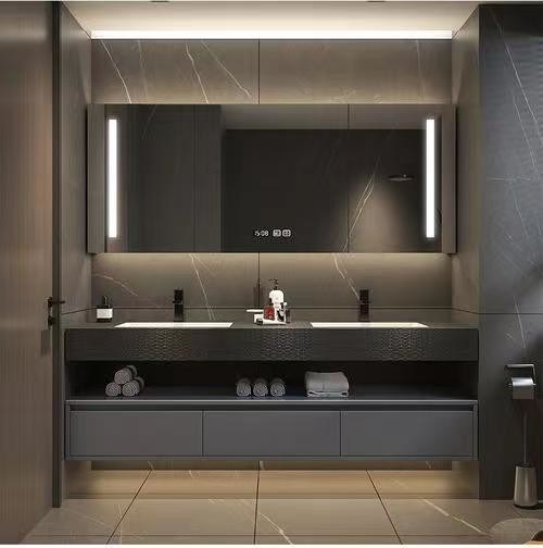 現代のスタイル ドイツ 軽い洗面台付き 黒木風呂のキャビネットとバニティ 23