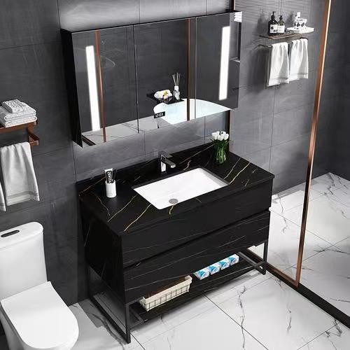 現代のスタイル ドイツ 軽い洗面台付き 黒木風呂のキャビネットとバニティ 9
