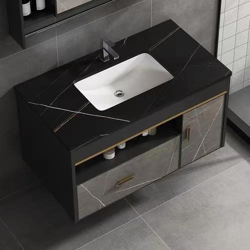 現代のスタイル ドイツ 軽い洗面台付き 黒木風呂のキャビネットとバニティ 1