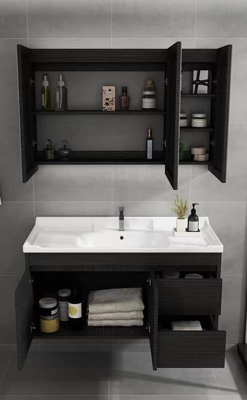 現代のスタイル ドイツ 軽い洗面台付き 黒木風呂のキャビネットとバニティ 7