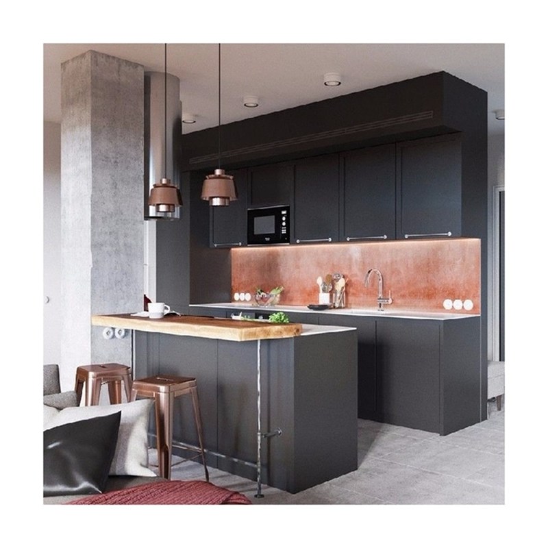 キッチンアイランド メラミンの板のドア材料付きのモジュール式黒いキッチン 2