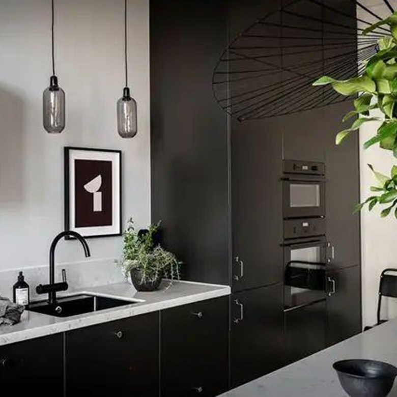 キッチンアイランド メラミンの板のドア材料付きのモジュール式黒いキッチン 3