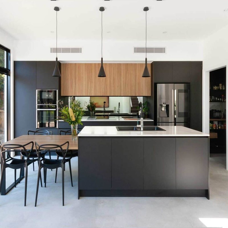 キッチンアイランド メラミンの板のドア材料付きのモジュール式黒いキッチン 1